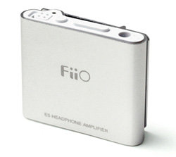 FiiO E5はTexas Instruments製のオペアンプを備えたヘッドホンアンプ。ヘッドホンとデジタル・オーディオ・プレイヤーの間に本機を挟むことにより、デジタル・オーディオ・プレイヤーのボリューム機構よりも高音質に信号を増幅する。EQによる帯域のコントロールも備え、FlatとBass Boostの2つのサウンドを選択可能。