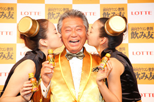 新製品・前向きウコン飲料ロッテ「飲み友」の新CM発表会が、10月29日(木)にBIG ECHO八重洲本店で開催され、CMキャラクターを務めるみのもんたが現れた。