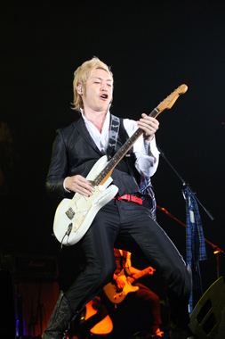 ファーストソロツアー<ひとのうただけどつるのうた>公演中のつるの剛士が、<クイズ!ヘキサゴンII presents つるの感謝祭~つるの恩返し~>を10月29日、代々木第一体育館で行なった。晴れ男つるのらしく好天に恵まれたこの日は、約10,000人のファンが結集、コンサートグッズのブースには早くから長蛇の列ができ開演前には限定グッズは全て完売。18時の開場と共に大勢のファンがなだれ込んだ会場は、つるの剛士の登場をいまかいまかと待ち望む雰囲気に包まれていた。東京でソロ・コンサートを行なうのは初であり、開演前から期待のまなざしがステージに向けられていた。