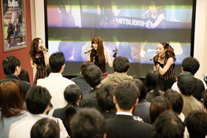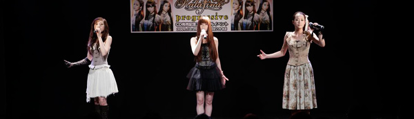 イベントでは、Kalafinaの3人がステージに登場するやいなや会場のボルテージが一気に上昇。デビューシングル「oblivious」や最新シングル「progressive」まで3曲を熱唱。緊張のあまりぎこちなかった様子も徐々に溶け、ライブでしか見る事の出来ない砕けたトークも飛び出しては集まったファンを喜ばせた。