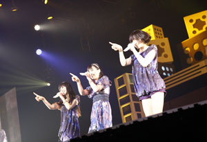 11tトラック14台を要した近未来的なステージセットも見ごたえたっぷりな今回のステージ。センター・ステージでの和やかなMCを挟みながら、大ヒット・シングル「ポリリズム」や人気曲「チョコレイト・ディスコ」など全22曲を得意のダンスと共に披露した。