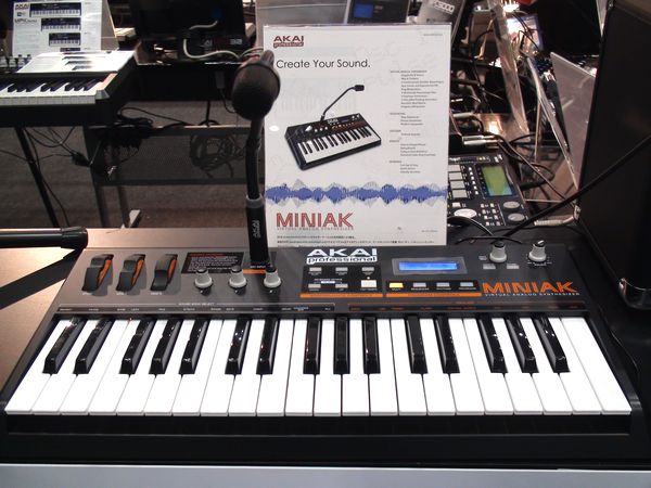 プロオーディオジャパンのブースでは、AKAI Professionalブランドのバーチャル・アナログ・シンセサイザーMINIAKが展示中。先日発表されたばかりの新製品が早くもお披露目されていた。