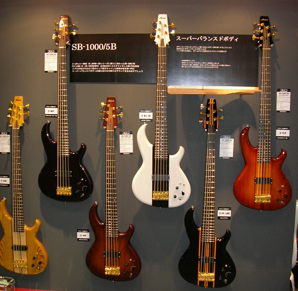 アリアプロIIでは、往年の人気シリーズとしてSB-100の5弦ベースが壁一面に陳列されていた。