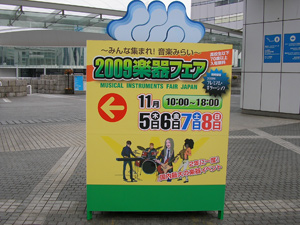 すでに速報をお届けしているように、11月5日(木)~8日(日)の4日間、2009楽器フェアが開催となり、私もいそいそと横浜パシフィコへ向かった。夢の楽器をテーマにしたイラスト展が私を暖かくお出迎えしてくれ…ると思ったのだけど、そんな展示はどこにもなし。あれー、あのほのぼのしたイラスト展って、いつのまにかやらなくなっちゃったんでしょうか。「ビルの階段が全部鍵盤で人々の往来がメロディーに…」みたいな、小学生が描く夢のあの楽器。見たかったなー。