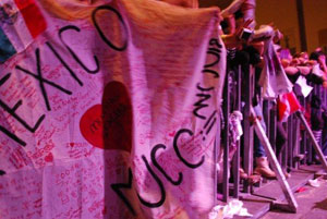 歓声と大合唱で締めくくられたメキシコ初ライヴはあっという間にアンコールへ突入。南米で人気の「絶望」、そして新曲「フリージア」で締めくくられた。