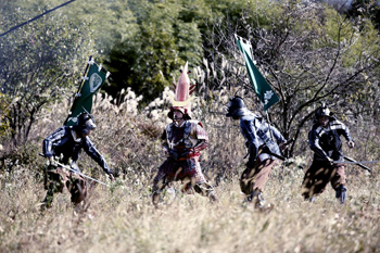 高岡:この頭なので、ちょっと長さが自分でもいまいち把握できていなくて、殺陣をやる時に刀が頭に当たっちゃったりだとか、あと重さですね。尻尾がついていて結構長めなので、後ろに持っていかれちゃったりとか、そういう苦労はありました。