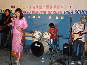 東京国際学園高等部は、13年前からラオスに小学校を作る活動をしており、すでに6校の小学校が建設されている。その関係で、ラオス人民民主共和国大使館の駐日特命全権大使であるシートン大使を迎えた東京国際学園高等部から、ラオスでのライブ経験のあるGYPSY QUEENが招聘された。