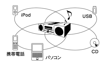 ダウンロードした曲も楽しめる ケータイにUSBメモリ/CD/FMあらゆるソースに対応