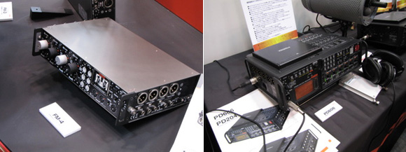写真左:ポータブルミキサーの新製品FM-4。写真右:8トラック記録のロケーションレコーダーPD606。