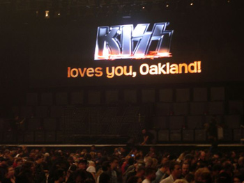 ご存知の通り、全米チャート初登場2位に輝いた彼らの最新アルバム、『SONIC BOOM』は、今のところ日本盤のリリース予定がない状態。先週のオリコン・チャートでは輸入盤がランクするという珍事(素直には喜べないから、敢えてこう言わせてもらう)も発生している。それゆえ、今回のライヴ鑑賞は特定の媒体のための取材としてではなく、あくまで勝手にチケットを手配して観に来た(便利な時代ですね。チケットマスターのサイトで購入しました)のだが、「現地に到着したその夜にライヴという無理矢理なスケジュールを組んで良かった!」と思えた。ちなみにライヴ・レポートは、日本のKISS FCの会報に書かせていただくことになっている。