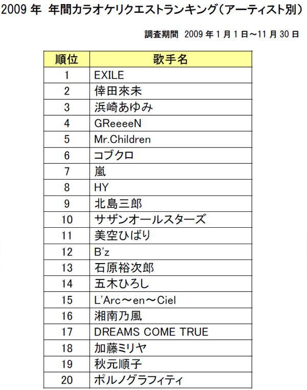 2009年間カラオケリクエストランキング発表 ~画像編~