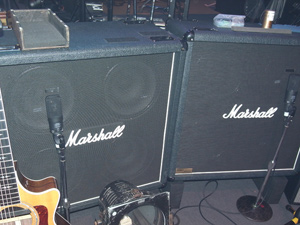 | ▲キャビはマーシャル1960。スラントの入っていないBキャビを使っている。 |