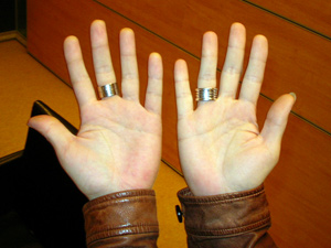 | ▲記念にいっくんの手のひらを撮影。この手から、あのぶっといいっくんサウンドが奏でられるのだ。 |