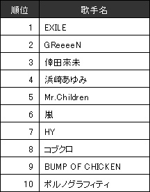 (2)アーティストランキングは、アーティストごとに歌唱回数を合計したもの。「キセキ」人気もさることながら、ここでは多くの名曲を持つEXILEが総合力で1位を獲得。