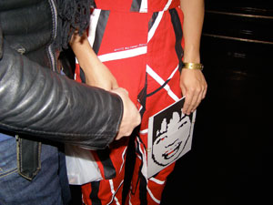 楽屋はどんな具合かと見に行ったら、茶色の大きめなバッグを持ち、エディ柄のオーバーオールを着た人物を発見。バッグの中身は秘密兵器というから、ますます怪しい。挙動不審かつ危険人物かもしれない。いや、待て。平日の昼間からそんな格好で歩いているのは日本で唯一人、カトウタロウぐらいのもんだ。そのタロウがバッグから取り出したのは、エディ柄にペイントされたスタインバーガー・タイプのギターだった。この日のステージでは使われなかったが、楽屋にはバンブルビーも用意されていた。さらに5150タイプ、WOLFGANGとか、エディ・モデルは5~6本はあるとか、聞いてもいないのに自慢話まで始める。やはり、うざいヤツである。