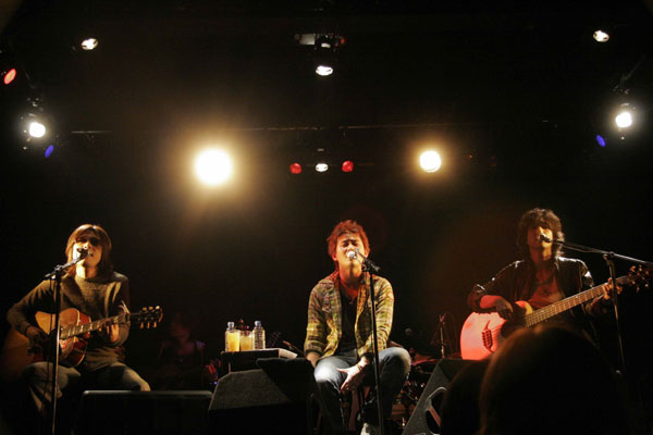 会場は大阪のライブハウスCELL BLOCK。約1時間半のライブではインディーズ時代のCSN&Yのカバーから最新アルバムまで、また発売未定の新曲「旅立ちの歌」も初披露されるなど、全16曲を披露。バンド形式で行なわれる通常のライブとは違い、アコースティック編成で3人の紡ぎだす歌声とやわらかいサウンドを、ほとんど生音に近い近距離で聴いたオーディエンス。思わず涙を流す姿も見られる感動のパフォーマンスとなった。