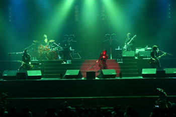 SEをはさみ最新アルバム『memento mori』収録の表題曲「Memento mori」や2007年発表のアルバム『天使のリボルバー』から「絶界」など、近作も披露。「Snow white」では、実際に雪(らしきもの)が降り注がれ圧巻だった。
