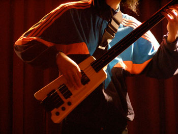 ケイタイモのセッションは、神出鬼没ゆえに情報も直前にならないと入手できなかったりするが、2010年はなるべく機会を増やしたいそうです。ちなみにライブ写真は“顔はやめなよ、ボディ、ボディ”by山田麗子a.k.a.三原じゅん子の教えで、ケイタイモのボディしか撮らないようにしました。それとケイタイモ愛用のベースは、今ではレアなフレットレス仕様に改造したスタインバーガー。それから2010年の初日の出の代わりとして、セッション直後のケイタイモの後頭部。