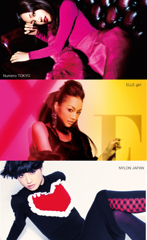 説明するまでもなく、ハイセンスなファッションを扱っている前述3誌は、それぞれフランスやアメリカで本家の雑誌(『Numero』『ELLE』『NYLON』)が発刊。全世界の女性たちのファッション、コスメ、ビューティーに大きな影響力を持ち、広く認知されている。2009年秋にマライア・キャリーが『ELLE』とコラボしたブックレットをアメリカ版で作成したニュースは記憶に新しいが、本来ライバル誌ともいえる3誌が同じ企画で連動することは極めて異例で、世界でも前例がないという。