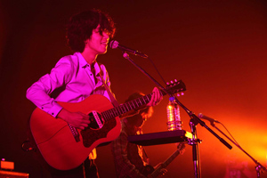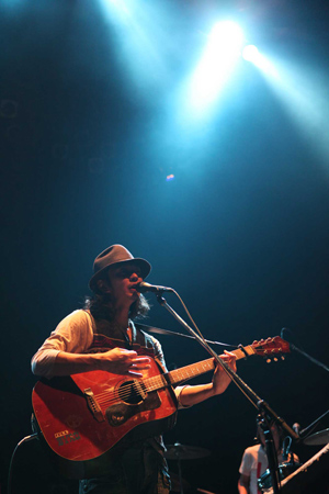 再び登場した増子店長の紹介を受け(毎回出てくるらしい)登場したのは、Caravan。リズム隊に、GREAT3から高桑圭、白根賢一を、そしてキーボードには堀江博久を迎えたなんとも豪華な布陣で奏でる一曲目は「Wagon」。客席は音にあわせてゆらゆらと気持ちよさそうにゆれている。終始笑顔でバンドとアイコンタクトを交わしながら楽しそうにCaravanが歌うグッドミュージックの数々に、会場全体がピースフルな雰囲気に包まれた。