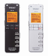 ティアックは、高音質ステレオコンデンサーマイクにより24bit/48kHzのリニアPCM録音にも対応したICレコーダー「VR-20」を3月上旬より、「VR-10」を2月下旬より発売する。