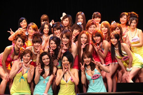 まずは番組オリジナルソング「バナナ・マンゴー・ハイスクール」を披露。冒頭に入る吉沢明歩の「私を窓辺に飾ってよ いい花咲くよ」というフレーズ(そもそもは吉沢が「男性をシビレさせる告白の言葉」として番組内で披露した名言)を生で聞けたということもあり、集まったファンは彼女たちのパフォーマンスにいきなり釘付けとなった。