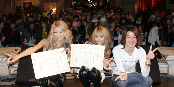 300人のファンを前に、「会いたい、今すぐ」を含め3曲をライヴ披露した。また、トーク・コーナーではテレビ番組『あいのり』で人気者となった“パンツ屋こーすけ”こと本多洸亮さんも参加。さらに、ゆまち&愛奈の2人にはナイショで、「会いたい、今すぐ」のヒットを記念しての賞状授与式がサプライズで行なわれたほか、来場者との“盛り写メ大会”や握手会を行ない、充実のイベントにアーティストもファンも、大いに満足した様子だった。