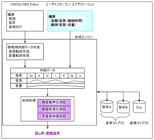 ネット上の動画共有サイトなどでは、当初ターゲットとしていた歌唱だけでなく、叫び声やセリフなどの「しゃべり」をVOCALOIDで実現しようという試みを多くなされていたが、その実現には多大な労力と時間を有する上、「しゃべり」特有の表現力にも限界があった。また、従来の音声合成の主流であるText to Speech(以下TTS)では、人間の感情や方言などを豊かに表現した音声を合成することは困難で、より人間の感情を豊かに表現した、新たな音声合成方式が望まれていた。ヤマハでは、こうした背景のもと、TTSなどの音声合成方式とは異なる形で、本来VOCALOIDが持つ歌唱合成技術を生かした形で表現力豊な「しゃべり」を実現するために、開発を進めてきたという。 こうして実現したのが今回発表となったVOCALOID-flexというわけだ。