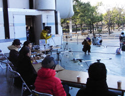 ハイチ支援を訴えるミュージシャン主導の活動としてDJ YUTAKA、ZEEBRAの呼びかけで始まったJP2HAITIの公開ミーティングが2月28日、東京渋谷の代々木公園野外ステージで行われた。