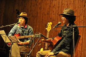 トップバッターを務めたのは、「SPACE SHOWER MUSIC UPDATE」から誕生したユニットTAXMAN(THE BAWDIES)×ウリョン(cutman-booche)。すっかり旧知の仲といった雰囲気の2人は、和やかなトークを挟みつつ4曲のカバーを演奏。中でもRCサクセションの「スローバラード」は、ウリョンの情感豊かな歌声とTAXMANの爪弾くやさしいギターが重なり、味わい深いサウンドスケープを作り出していた。