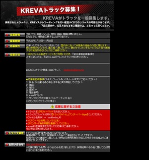 3月9日、KREVAがオフィシャルブログにて、トラックを一般募集し始めた。要するに楽曲募集である。
