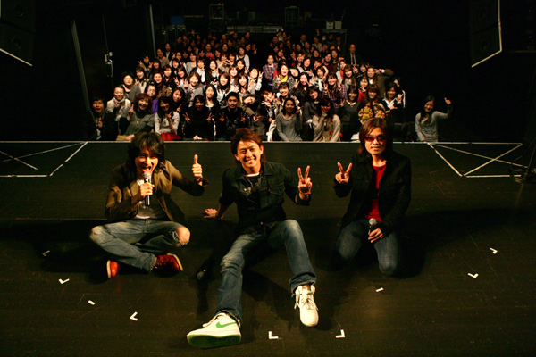 会場は大阪にある音楽専門学校ESPミュージカルアカデミー。この日、1000通以上の応募から選ばれた120名のファンには、「もうひとつの「旅立ちの歌」MUSIC VIDEO」が世界初公開された。「もうひとつの「旅立ちの歌」MUSIC VIDEO」は、2010年2月中旬~3月上旬にかけて全国のファンから募集した“旅立ち”にまつわる思い出の写真とそのエピソードを用いて作られた、いわばオーディエンス参加型の映像作品。