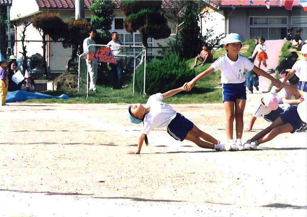 頑張りすぎるくらいの頑張り屋さんで、この写真でも、隣の子は肩の力が抜けてるのに、私だけ必死(笑)。この頃は女の子らしい服も嫌いで、裸足で外を走り回るような野生児でした。