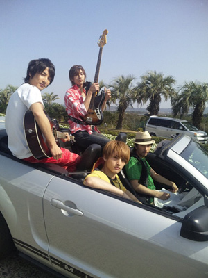 こうしてBARKSコラムを読み返すと何故か寒さに震えるシチュエーションの多い+Plusです。実はこの前の日も新曲のプロモーションビデオ撮影に館山に行ってきました。この曲は夏をイメージして作った曲なので服装も夏、夏、夏!そして4人でイカしたオープンカーに乗り込みまさに気分は南国!最高のロケーション!