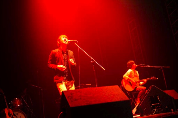 ライヴのオープニングは、ストリートライヴが始まるまでのドキュメンタリーのような映像から。「そろそろ始めますよ」というメンバー山下の台詞から1曲目の「ラムレンジャー」でいよいよライヴの幕が上がった。前半はストリートライヴと同じ、ヴォーカル山下祐樹、ギター井上慎二郎の2人だけでのアコースティックスタイルで進行。しっとり聴かせるバラードから会場中が手拍子で包まれるようなアッパーな曲まで、とても2人とは思えない表現力でオーディエンスを引き付けていく。