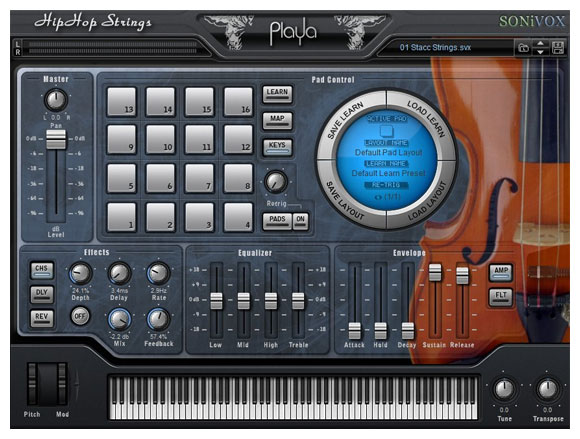 「PLAYA」シリーズは、MPCにも通じるパッドの操作性とファットなサウンドの組み合わせにより好評を博しているSONiVOX特製HIP HOP音源。その第3弾となるのが「PLAYA HIP HOP STRINGS」(プレイヤ・ヒップ・ホップ・ストリングス)だ。
