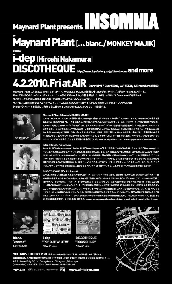 MONKEY MAJIKのMaynardソロプロジェクト、blanc.レギュラーパーティースタート