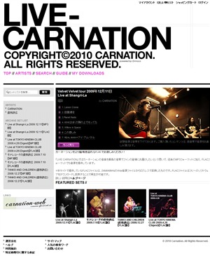 配信サイト「LIVE CARNATION」が動き出します。ここでは最新のライヴ音源はもちろん、ライヴ・アーカイヴス、秘蔵音源、録り下ろしのオリジナル作品などを配信販売していきます。