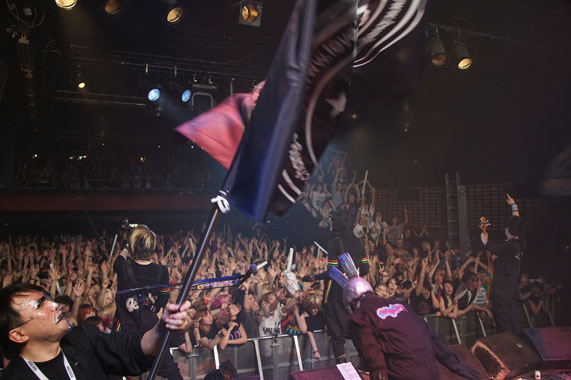 初のロシア公演。会場付近には、LM.Cを心待ちしたファンが集い、開場時間までまだ6時間もあるのにも関わらず、列ができていた。会場へバスが到着すると、どこからともなくファンが「88」を歌いLM.Cの到着を歓迎する。集まったファンは日章旗のTシャツをきたおじさんから、コスプレをした女の子まで、幅広い。