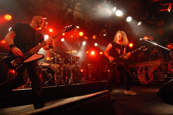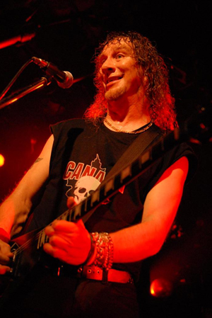 4月19日、東京・渋谷クラブクアトロにてアンヴィルのジャパン・ツアーが幕を開けた。2009年、そして2006年には<LOUDPARK>に出演している彼らだが、単独公演としては実に1983年の初来日当時以来ということになる。ツアー初日となったこの日の公演には、ファン歴の長さがうかがえる筋金入りのコア層のみならず、80年代のアンヴィルを知るはずもない若い世代のファン、あの名作ドキュメンタリー映画、『アンヴィル!~夢を諦めきれない男たち~』を切っ掛けにこのバンドを知ったとおぼしき人たちまでもが多数集結。ほぼ満員と言っていい大盛況となった。