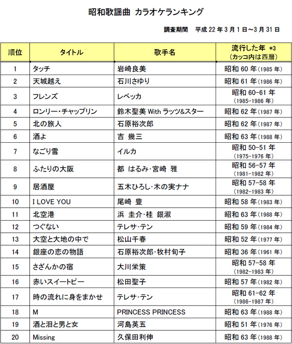 昭和の歌といえば、「タッチ」「天城越え」「フレンズ」