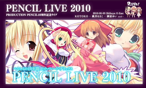 ゲーム制作会社「PRODUCTION PENCIL」の設立10周年を記念した<PENCIL LIVE 2010 PRODUCTION PENCIL 10周年記念ライブ>が、5月3日に渋谷O-EASTにて開催される。