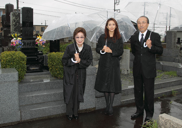 この日は、朝から雨が降り続く中、林あさ美は、大谷明裕、水木かおる夫人とともに墓前に手を合わせ、新曲発表を報告。