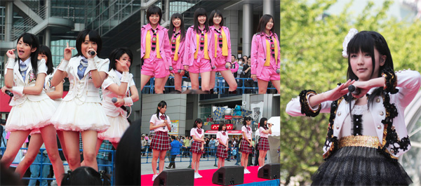 暖かい日差しに恵まれたこの日、お台場・フジテレビ1階のお台場グルメパークには多くのファンや偶然遊びに来ていた人たちがオーディエンスとなって集結。ステージ周辺はもちろん、ステージ前方にある階段や、フジテレビ本社の中央階段にも、彼女たちのステージを観覧しようという人が溢れかえっていた。
