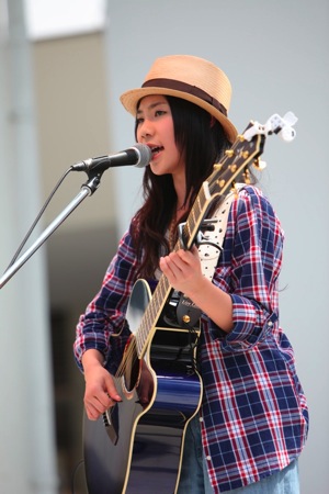 ステージに呼び込まれた中川あゆみは、「よろしくお願いします。ついにこの日がきて、皆さんに歌をお届けできるのが本当に幸せです。」と、挨拶。マイクを向けられて見せる表情はどこにでもいそうな14歳(5月4日が彼女の誕生日だった)の女の子だが、ギターを持つとその表情は一変し、サポートのギタリストと、ギター2本でデビュー曲「事実~12歳で私が決めたコト~」とシングルのカップリング曲「似顔絵」を披露。途中、ギターの弦が切れるというアクシデントもあったが、9歳(小学校3年生)の頃からストリートライヴを行なってきたという彼女だけに、その経験を持ってすればトラブルも関係なく、その言葉ひとつひとつに魂を込めて歌い上げた。