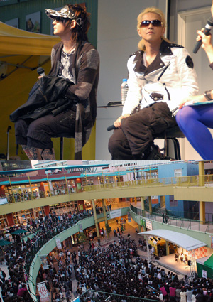 VAMPSが登場すると、会場に駆けつけた約5000人の観客から一斉に大歓声。イベントでは、休みの過ごし方や名古屋にまつわる話など幅広いトークを終始和やかに繰り広げた。とはいっても、VAMPSの2人が口を開くたびに、会場からは黄色い声が上がるなど、大変な盛り上がりを見せていた。