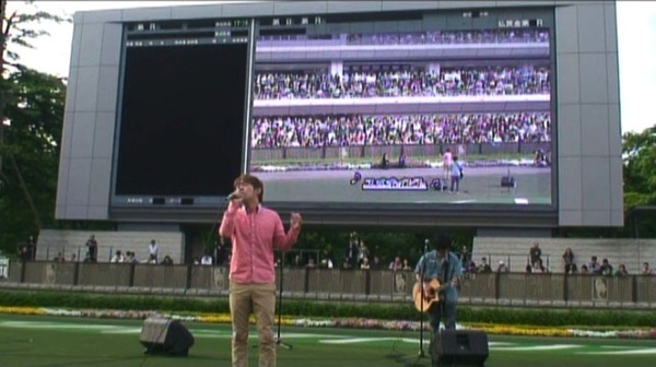 パドックライヴでは、「Stand by U」(東方神起へ提供した楽曲のセルフカヴァー)、そして2010年JRAブランドイメージソング「ユメオイビト」の2曲を歌唱。「風を感じながら、頑張っている方へ頑張ってと伝えられるとっておきな曲です」という、ラムジのMCが多くの競馬ファンの心を突き動かしたのか、はたまた競馬ファンにはおなじみの曲であるがゆえか、「ユメオイビト」のサビにさしかかると、パドックを埋め尽くす多くの人たちがフレーズを口ずさむという光景が見られた。
