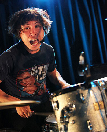 そして、この日の締めくくりはモーモールルギャバン。いきなりボーカル&ドラムのゲイリー・ビッチェの雄叫びとともにスタート。ゲイリー・ビッチェの派手なドラムパフォーマンスとMCに煽られ、会場もどんどんヒートアップ。「トリなんてやらしてもらっちゃってすみません!せめて全力でライブやらしてもらいます!」と叫び、ラストはついに裸でドラムセットに仁王立ちになるゲイリー・ビッチェ。自由奔放なライブを繰り広げるモーモールルギャバンに圧倒されっぱなしのライブとなった。