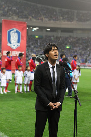 5月24日(月)に開催されたサッカー日本代表<KIRIN CHALLENGE CUP2010日本代表対韓国代表戦>にて、ソウル出身の歌手・Kが韓国国歌斉唱の大役を務めた。