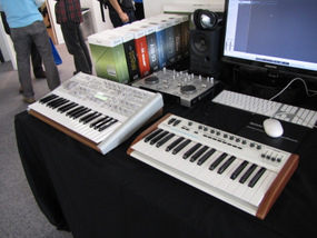 DJ CONTROL E2+などHerculesのDJギアも多数展示したフックアップのブースを彩っていたのは、ビンテージシンセサイザーのサウンドを再現するAuturiaのソフトウェアシンセサイザー。数多くのシンセサウンドのプリセットと専用のUSB/MIDIキーボードをセットにした「Analog Experience」シリーズを中心に、minimoog、CS-80、ARP 2600、Prophet、Jupiter-8など、名前を見ただけでその特徴あるサウンドがイメージできそうな単体ソフトもズラリ。実際の音色も70~80年代の名機そのものといった感じだし、演奏および音色の編集を行えるコントローラーキーボードの使い勝手もよさそう。また、オーディオピッチ編集ソフトの「Melodyne」については目黒真二氏のセミナーも開かれ、ギターのコード演奏やオーケストラのオーディオ素材を使い、1音1音のピッチやビブラート、タイミングをまるでMIDIデータのようにドラッグ操作だけで簡単に変更、修正できる様子が実演された。